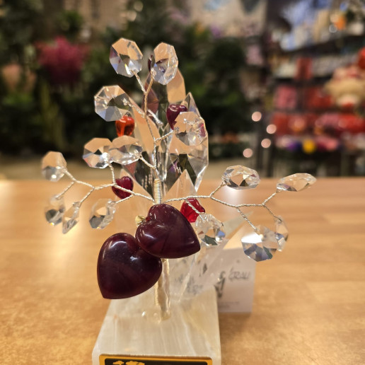 Bonsai de cristal con corazones