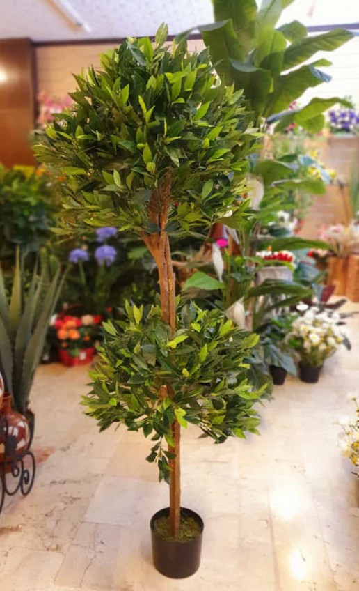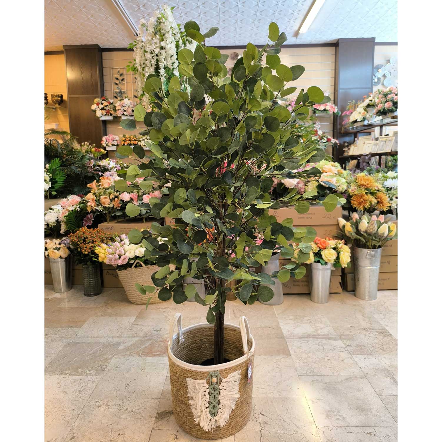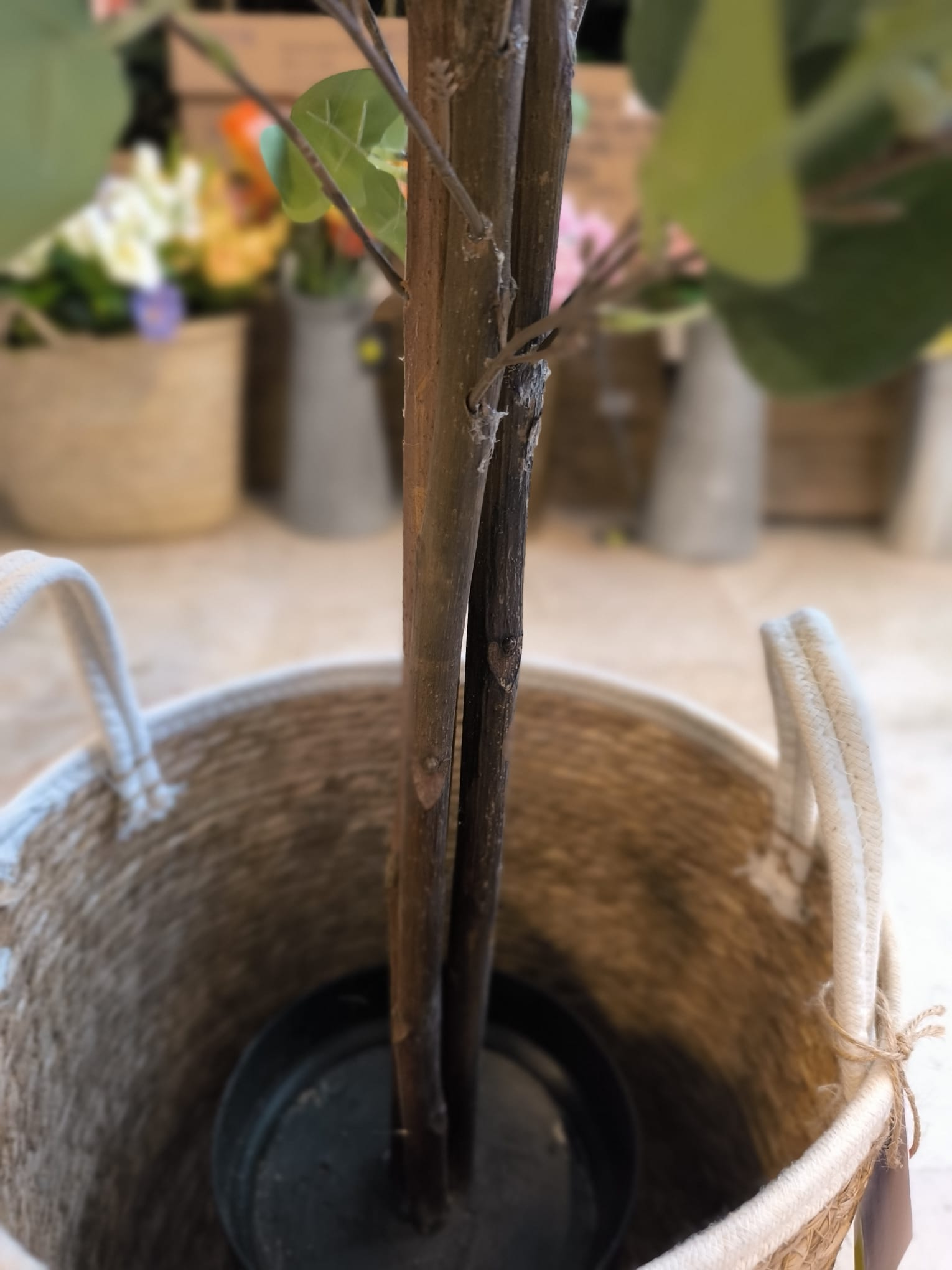 Eucalipto artificial color verde. Tronco de madera natural.