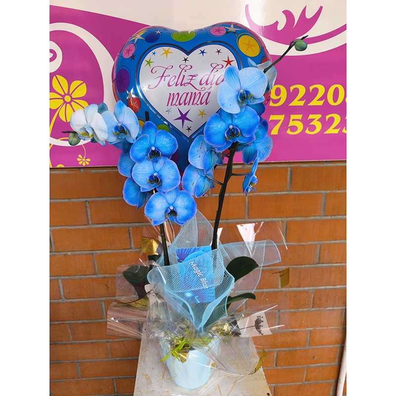 Orquídea con globo Día de la Madre (disponible con globo para otras celebraciones).